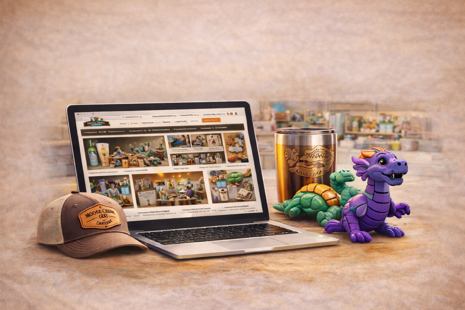 Browse the Online ShopDiscover laser made gifts, 3D printed items included mini articulated animals, custom leather patch hats, engraved drinkware, and curated DIY craft kits.