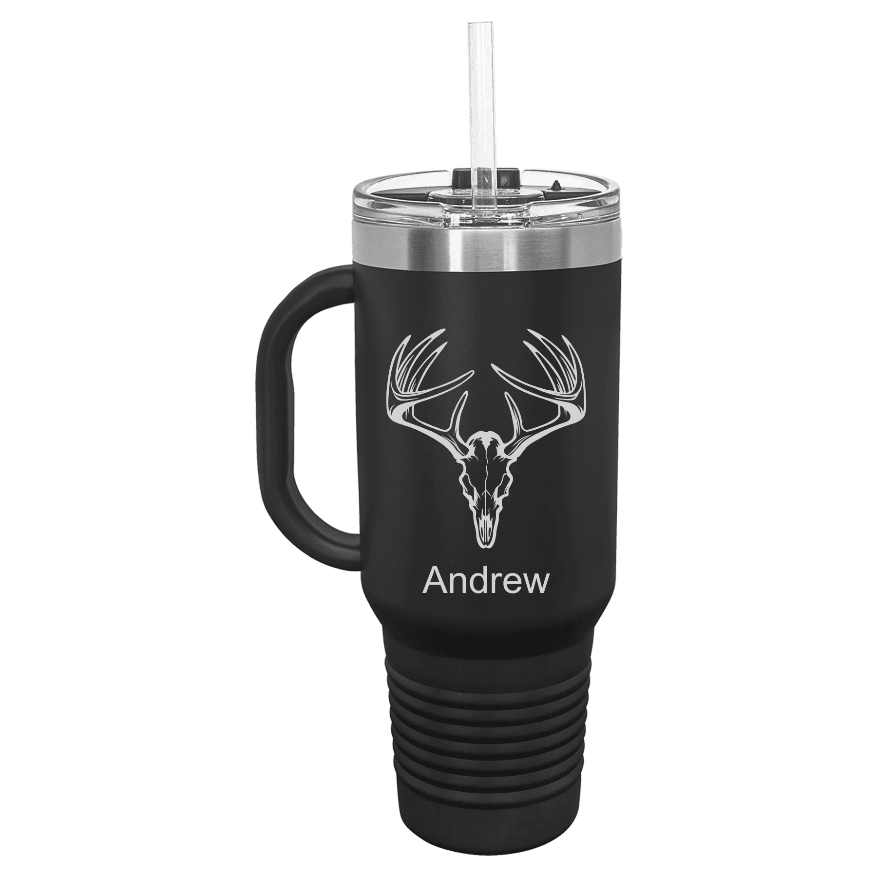 40oz Polar Camel Insulated Tumbler – Deer Skull Design with Close-Top Lid & Straw