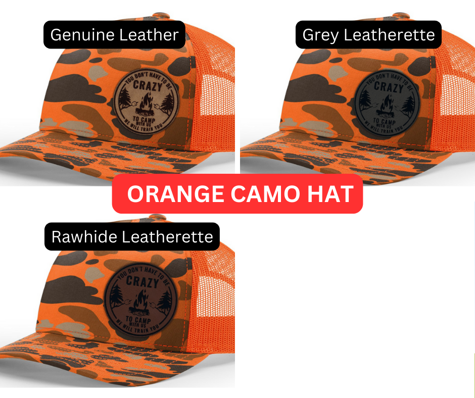 Introducing the 'You Don't Have to Be Crazy to Camp with Us - We Will Train You' Patch – a hat that celebrates the adventurous spirit and camaraderie of the camping community. Available in Charcoal, Heather Grey, Green Camo, and Orange Camo, each color serves as the perfect backdrop for a humorous emblem that welcomes all levels of camping enthusiasts.