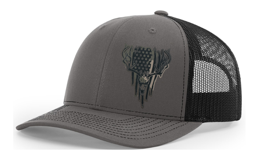 Introducing the Richardson 112 Snapback or FlexFit L/XL – a hat that seamlessly blends patriotism with the untamed beauty of the wilderness, featuring a captivating elk skull adorned with the American flag. Available in Charcoal, Heather Grey, Green Camo, and Orange Camo, each color reflects the rugged charm of the great outdoors, allowing you to showcase your love for country and nature.