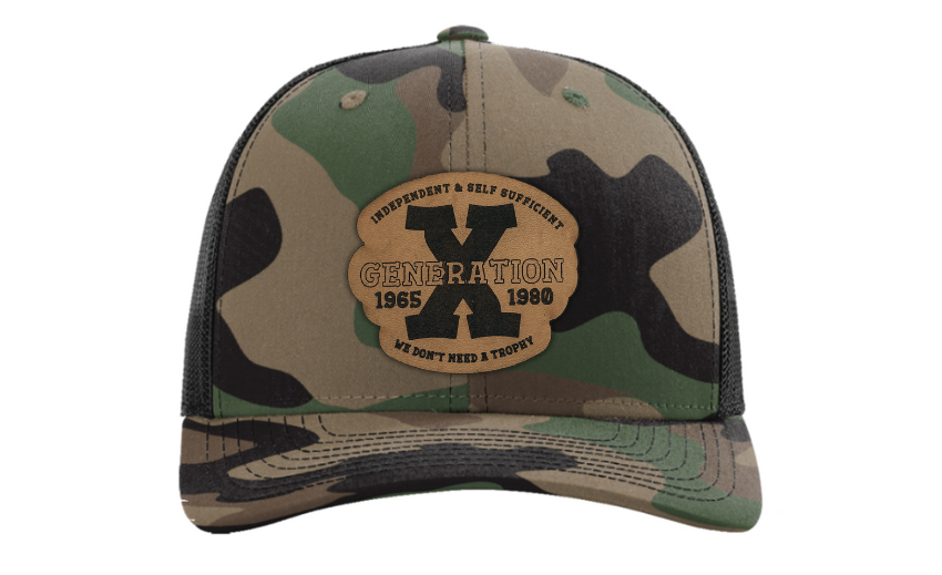 Introducing our Generation X - Independent and Self-Sufficient laser engraved and cut patch, now available on the iconic Richardson 112 snapback or FlexFit L/XL. Celebrate the resilient spirit of Generation X with a statement piece that speaks to your self-reliance and independence.