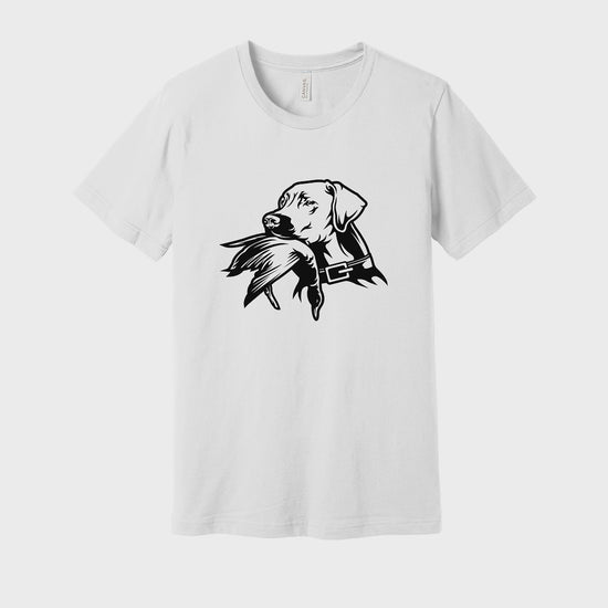 Celebrate your love for dogs and hunting with this Bella + Canva 3001 shirt, featuring a detailed design of a loyal dog holding a duck. This shirt perfectly captures the bond between a hunter and their faithful retriever, making it an ideal choice for outdoor enthusiasts and dog lovers alike.